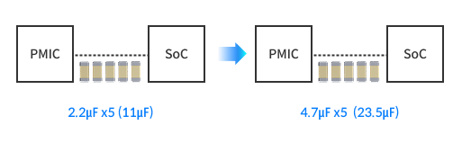 ∙ 多路显示控制 ∙ 快速运算大量表格data ∙ 驾驶员状态监测及语音识别处理 ∙ 支持多种通信方式 → 随着处理器的高性能化,MLCC 特性非常重要! | 小型化 & 高可靠性 - 小型/高容量 MLCC - Low ESL MLCC |