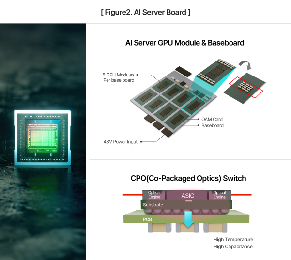 NIC and PCIe used in AI servers operate in frequency bands of tens of GHz. High-capacitance MLCCs absorb low-frequency noise and, when combined with small sizes, suppress power noise across a wide bandwidth. Thus, maximizing AI server computing performance depends not only on processor performance but also on securing and optimally designing high-capacitance MLCCs—making MLCC NPI products key components in AI computing and network board design.